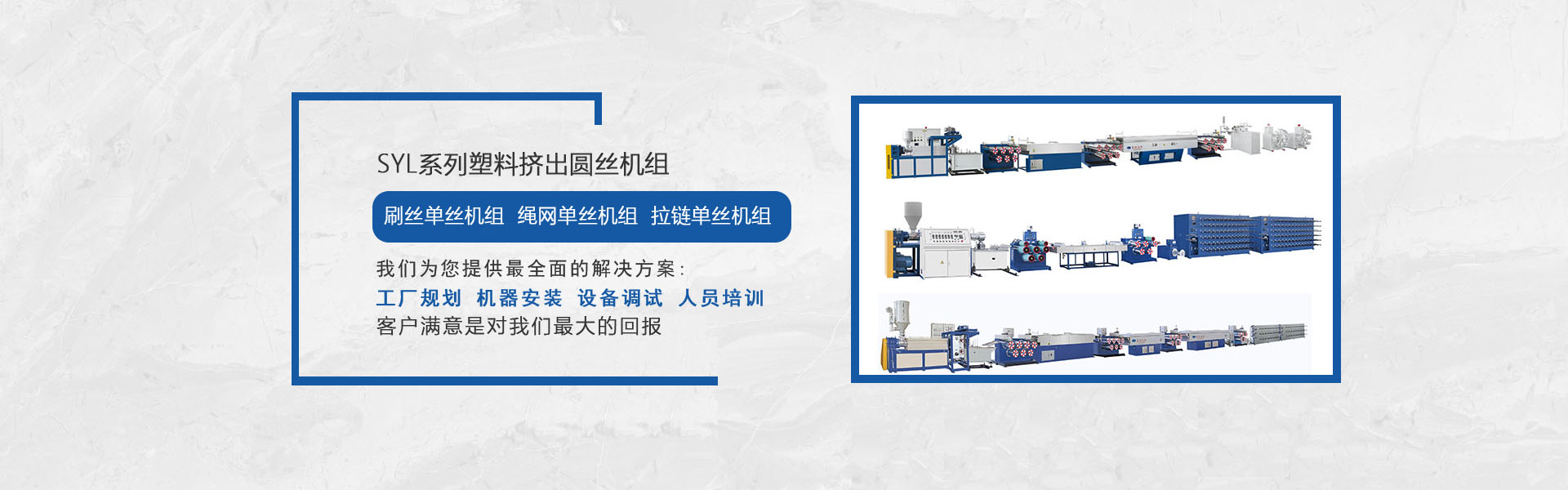 我司是專(zhuān)業(yè)生產(chǎn)塑料擠出圓絲、平膜扁絲機(jī)組等及其聚酯托幕線(xiàn)等配套附件、部件的專(zhuān)業(yè)化、正規(guī)化的企業(yè),公司集行業(yè)專(zhuān)家的豐富知識(shí),多年積累的經(jīng)驗(yàn),結(jié)合國(guó)外同行先進(jìn)技術(shù),研發(fā)制造出系列圓絲擠出機(jī)組,在主要技術(shù)指標(biāo)和性能上已處領(lǐng)先水平,我們正不斷優(yōu)化管理,強(qiáng)化細(xì)節(jié),使之能更好地為廣大用戶(hù)提供從技術(shù)、制造到工藝的全方位服務(wù)。